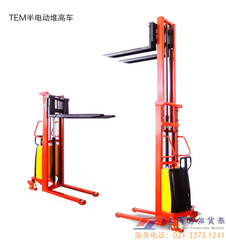 TEM系列半电动堆高车特点 v 配置性能可靠的动力单元、高品质智能充电器、高效能蓄电池; v 门架及底座科学设计,结构牢固而又轻巧,提升省时高效; v 带转向导向,刹车轻便耐用; v 表面双层喷涂,耐刮防腐,整车美观大方。